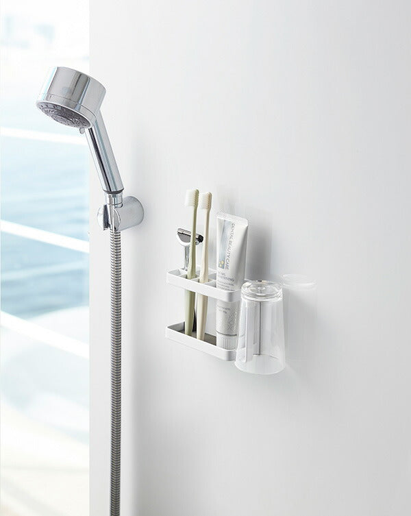 ●マグネットが付く浴室壁面に簡単取り付けの歯ブラシスタンド。