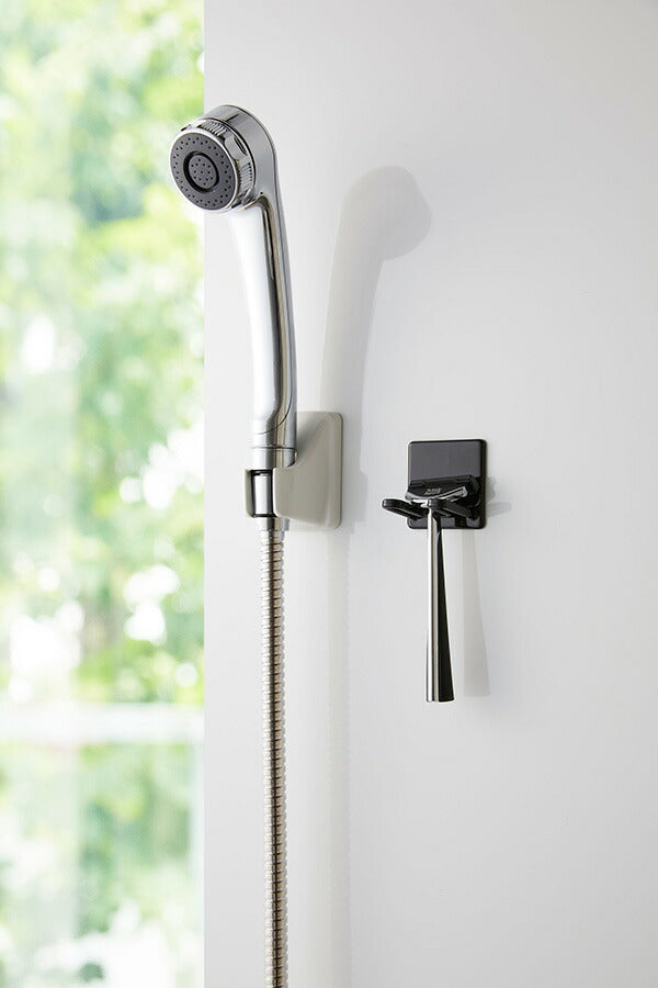 ●マグネットが付く浴室壁面に簡単取り付けのヒゲ剃りホルダー。