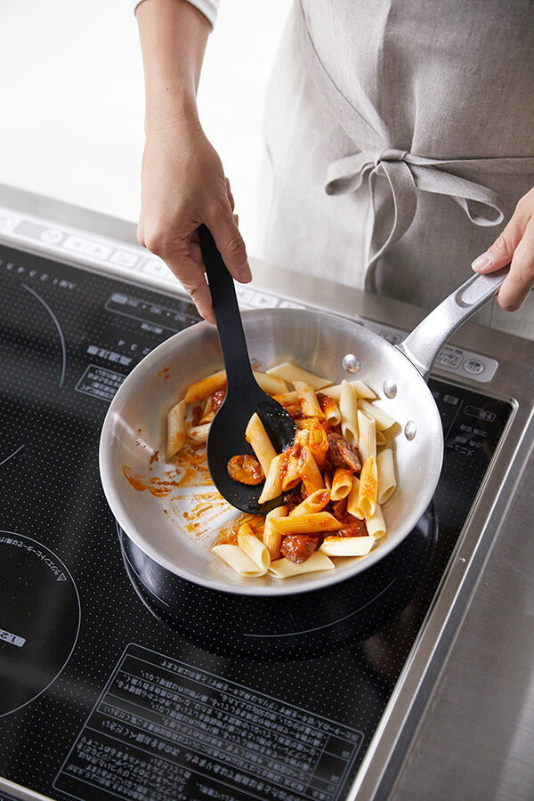 ●シリコーン製で滑りにくく、フライパン・ナベなどを傷つけません。