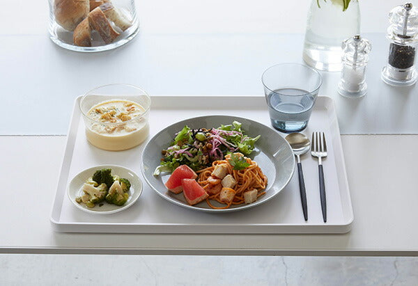●小皿から大皿までしっかり置けて持ち運べる大き目サイズのトレー。