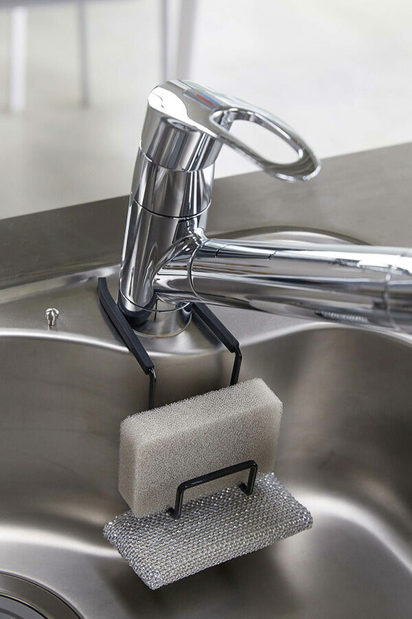 ●スチールの取り付け部がしっかりホールドするので、ずれ落ちることなく快適に使用できるスポンジホルダーです。