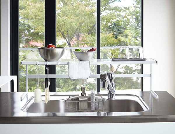 ●調理エリアに水まわりエリア・加熱調理エリアとそれぞれの場所でキッチン作業のサポートをしてくれる便利なキッチンラック。