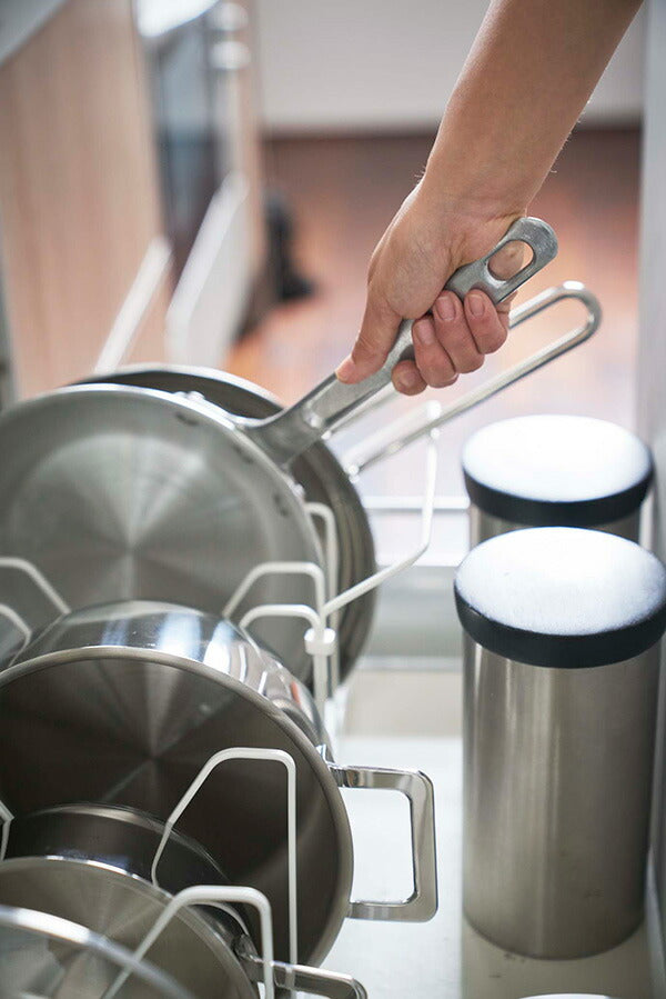 ●対応サイズ: 約18~30cmまでの鍋(鍋蓋)・フライパン、持ち手置き含む商品サイズ:約W45~82×D25.5×H17.5~21cm