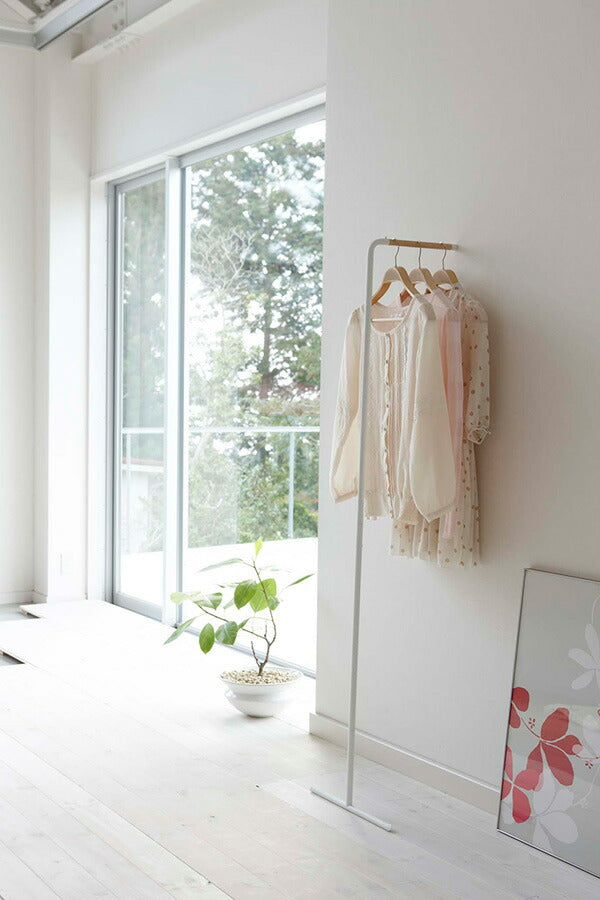 ●木目がやさしいシンプルなデザインの立て掛けコートハンガー。