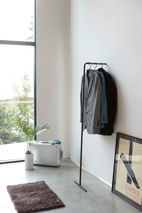 ●木目がやさしいシンプルなデザインの立て掛けコートハンガー。