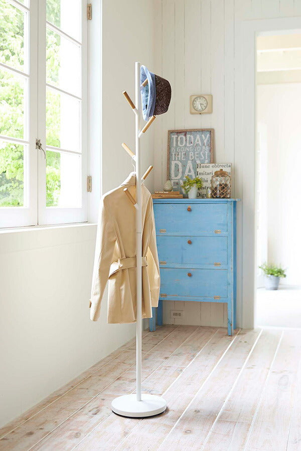 ●木製のバーとスチールを組み合わせたナチュラルでスタイリッシュなポールハンガー。