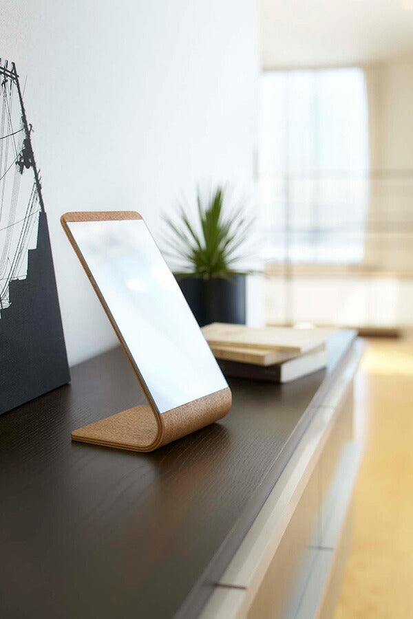 ●上品な木目のカーブが美しい上質なスタンドミラー。