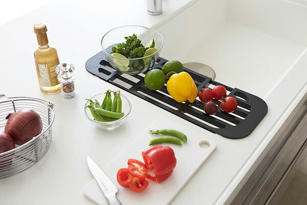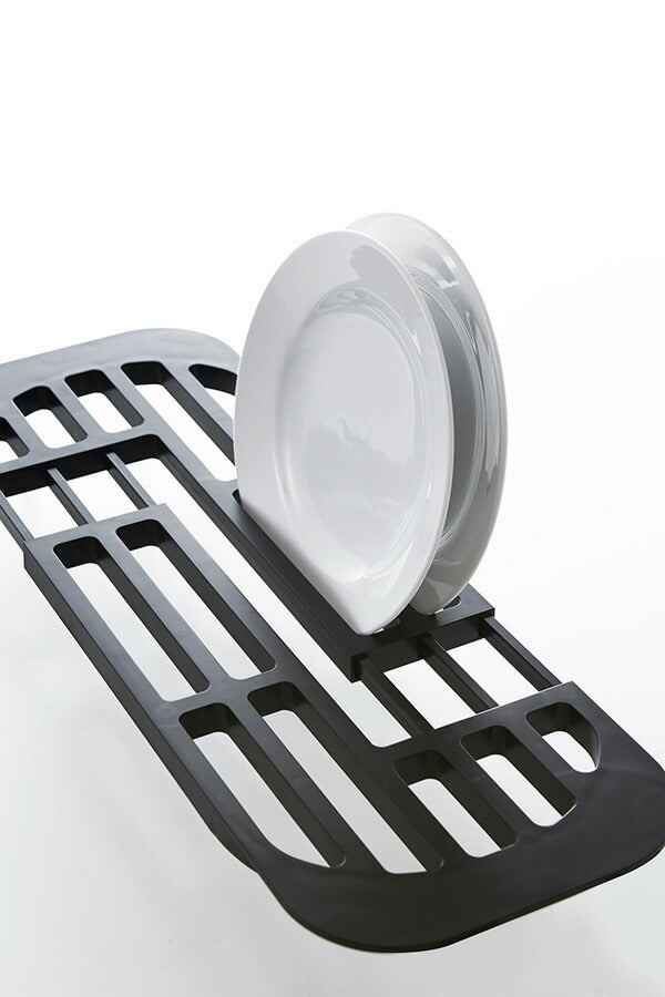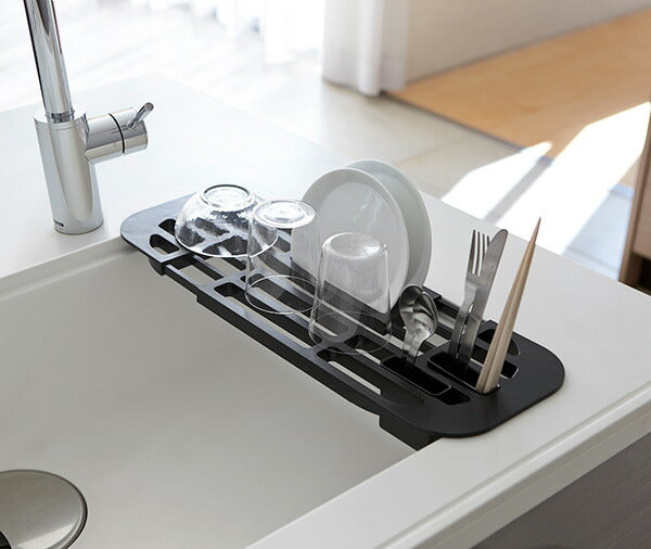 ●シンクの角にぴったりフィットの伸縮水切りラック。