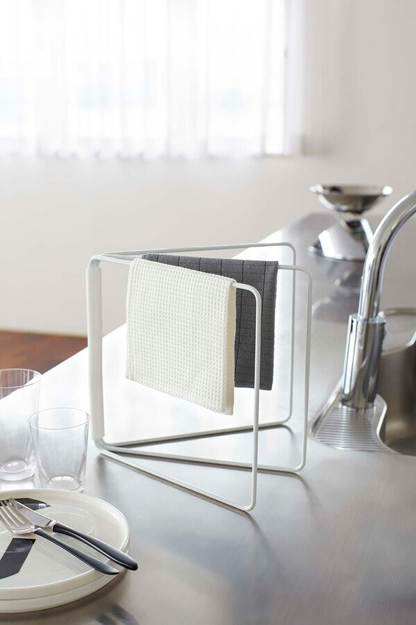 ●簡単に広げてスリムに折り畳める3枚掛けの布巾ハンガー!