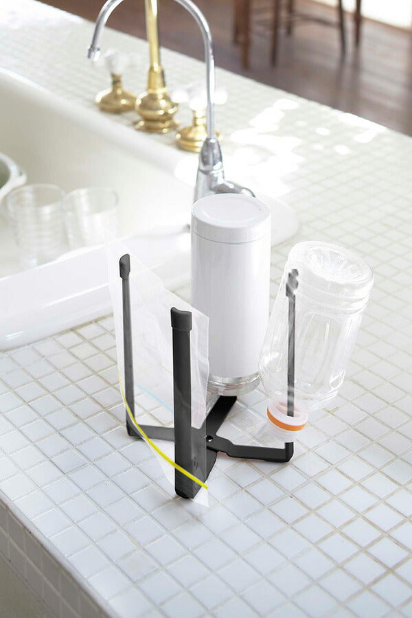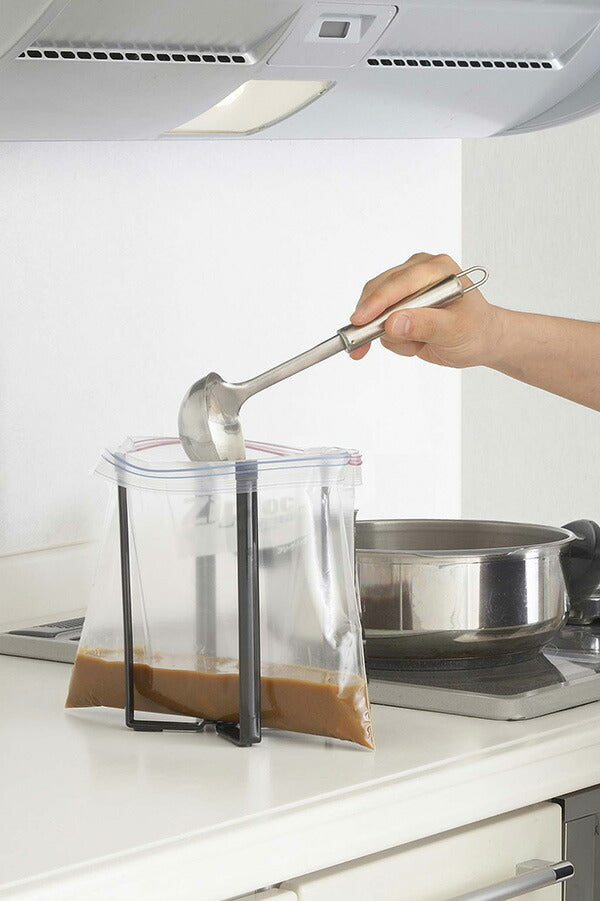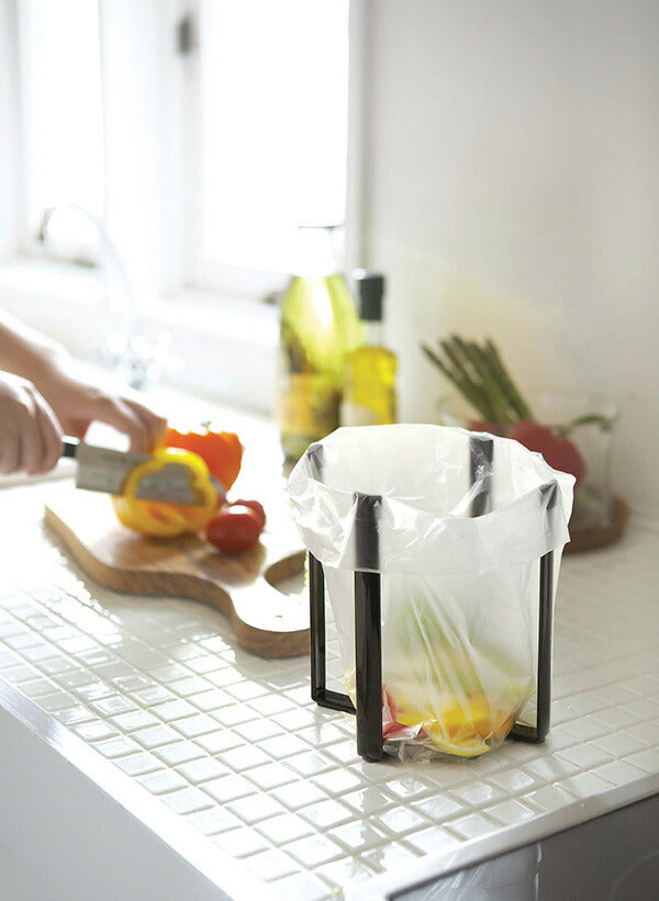 ●ポリ袋を掛けて調理中にでる野菜クズや資源ゴミを、その場でポイ!