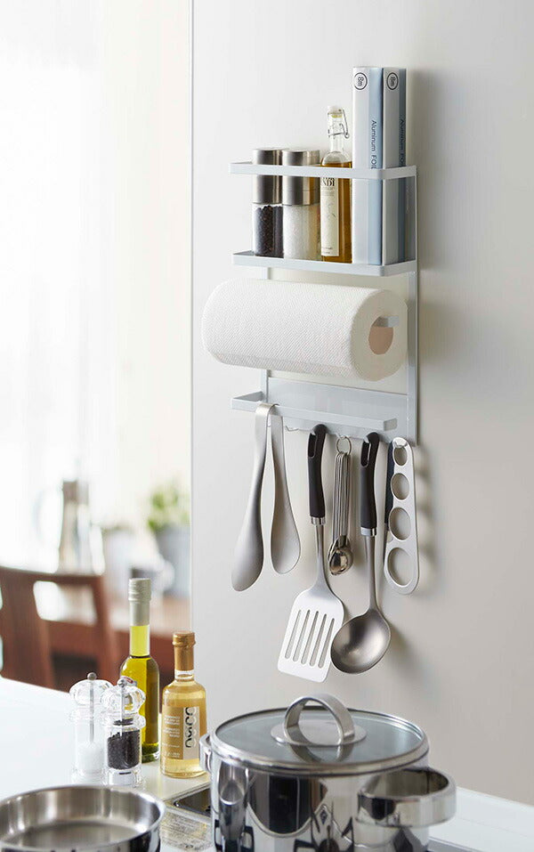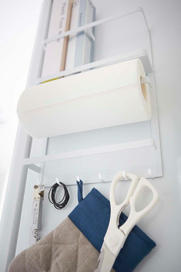 ●中段には、キッチンペーパーや布巾を掛けられるホルダー付き。