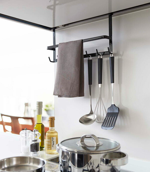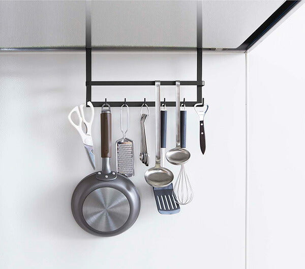 ●レンジフードに引っ掛けるだけでキッチンツールの収納スペースに!