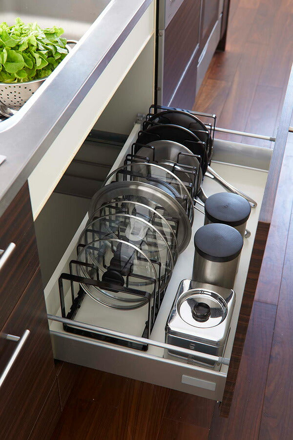 ●フライパンや鍋・鍋蓋などをまとめて収納!