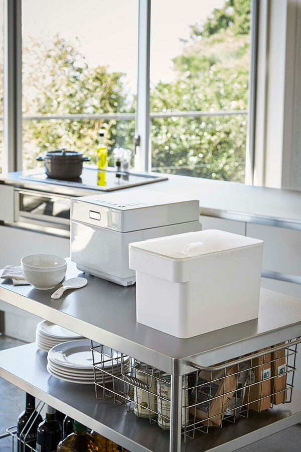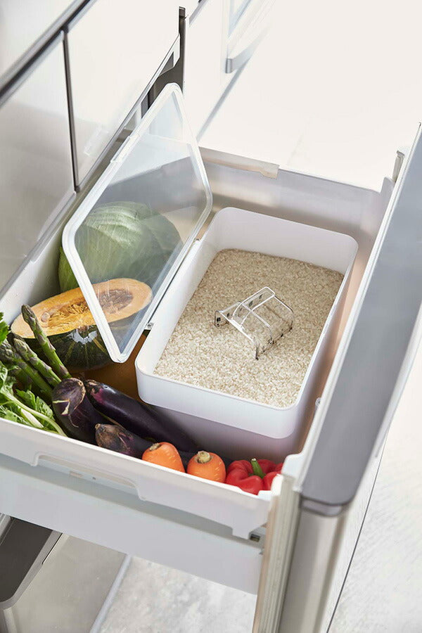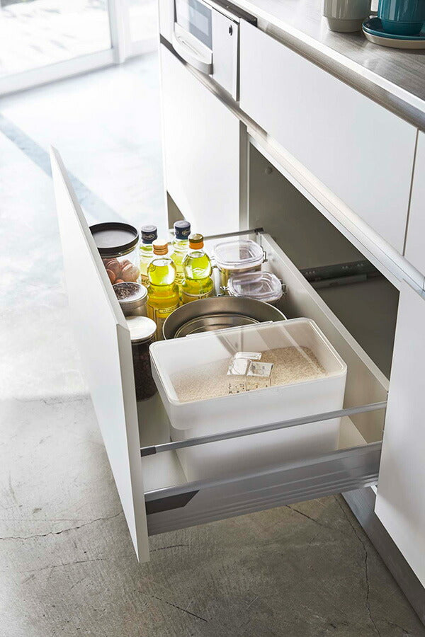 ●システムキッチンの引き出しに合うスタイリッシュな米びつ。