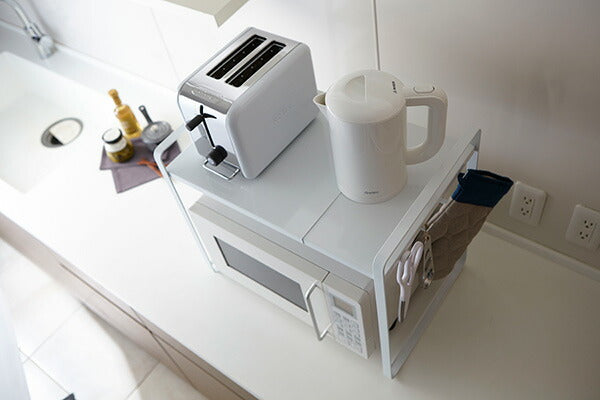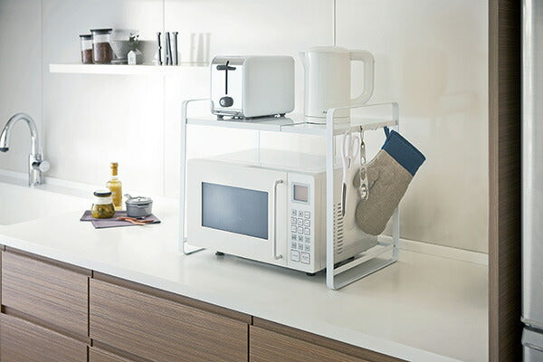 ●シンプルで使いやすい約47.5~75cmまで伸縮可能な電子レンジ収納ラック。