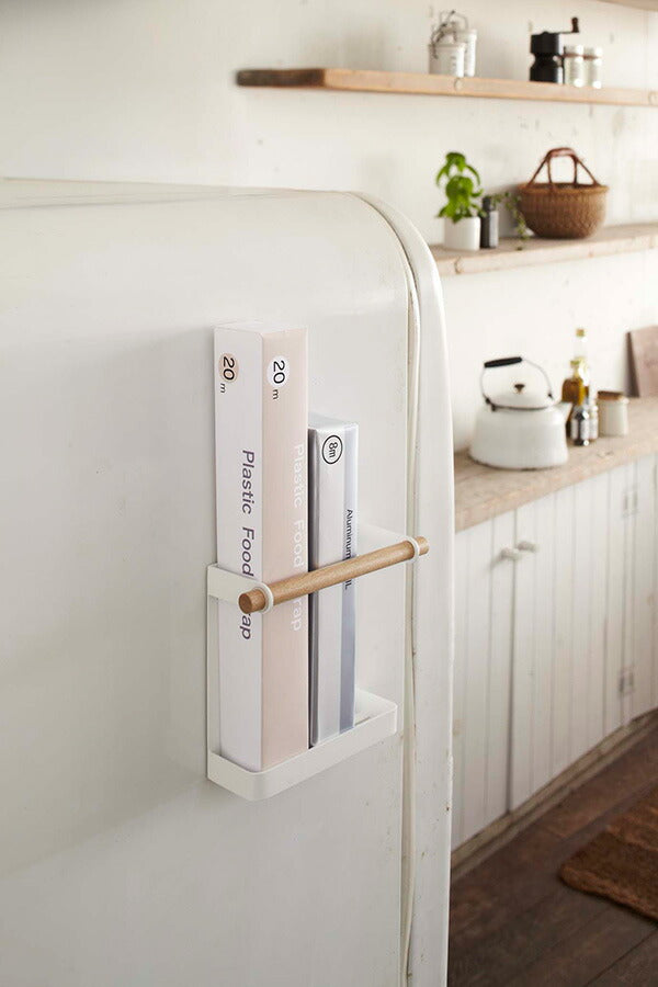 ●スチールと木の組み合わせが美しいマグネットラップホルダー。
