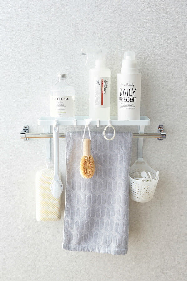 ●タオルバーに差し込むだけで簡単に設置できるシェルフ。