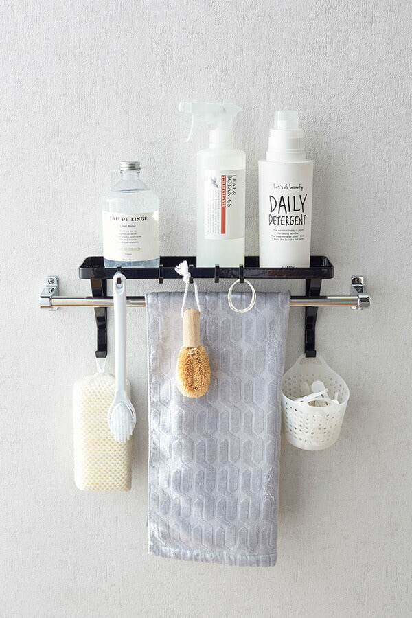●タオルバーに差し込むだけで簡単に設置できるシェルフ。