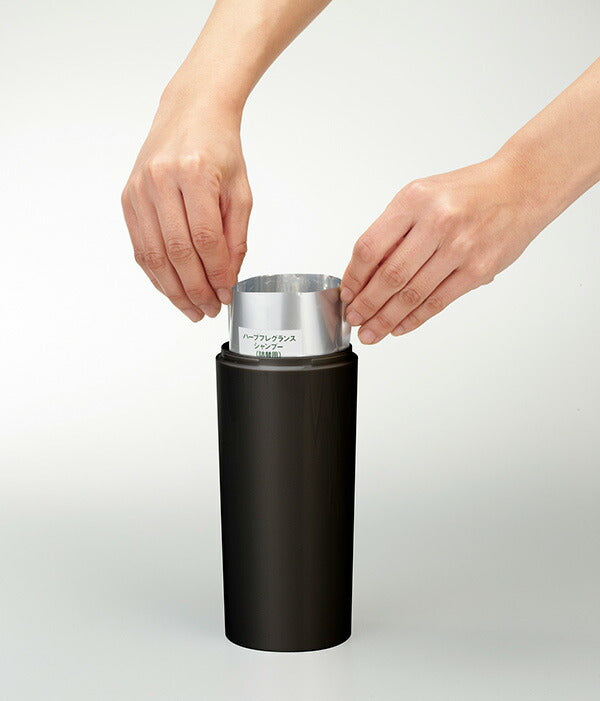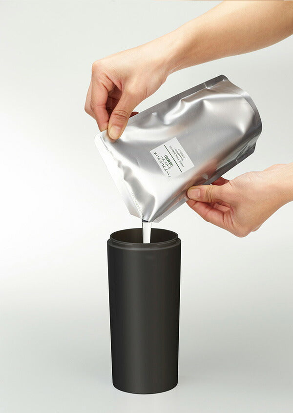 ●蓋を外して詰め替え用袋がそのまま入ります。