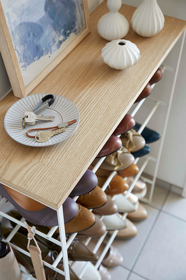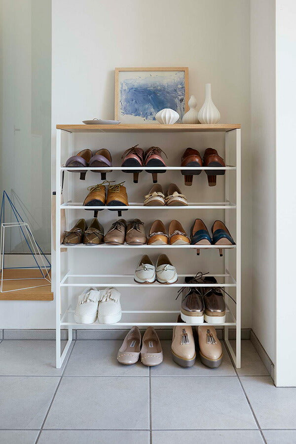 ●下駄箱からあふれた靴をまとめて収納できる天板付きのシューズラック6段。