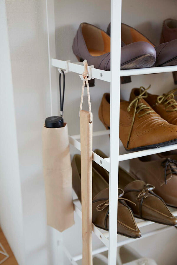 ●付属のフックが付いているので、靴べらや、折り畳み傘などの小物もまとめて収納できます。