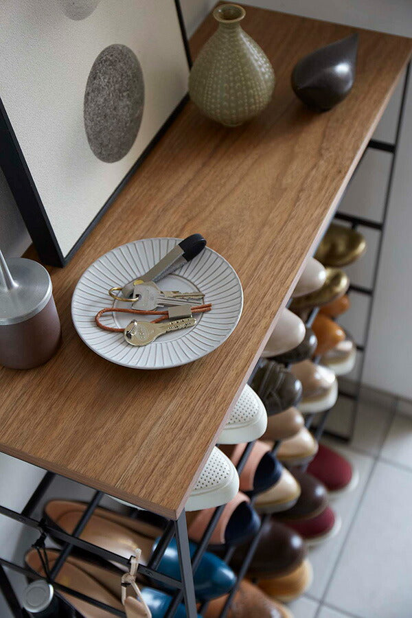 ●下駄箱からあふれた靴をまとめて収納できる天板付きのシューズラック6段。