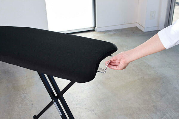●品質表示: 表面布:綿100%、クッション材:ポリエステル、天板・脚部:スチール(粉体塗装)、ボタンプレスゾーン(凹凸吸収クッション):ポリウレタンフォーム、アイロン置き台:スチール(クロームメッキ)、キャップ:ポリエチレン