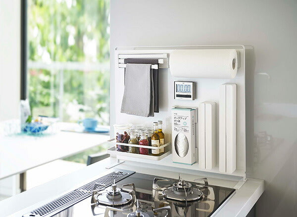●コンロ・シンク・調理場の奥を有効活用。別売のマグネット収納ツールを好きな位置に取り付けて、自分だけのオリジナル収納をつくれます。