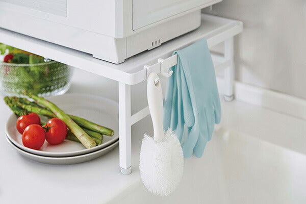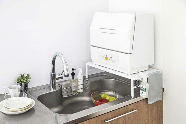 ●伸縮可能でシンクに渡せる食洗器ラック。調理スペースに置いても下が広々使えます。