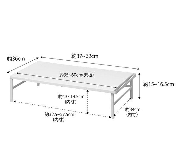 ●内寸: ラック下約32.5~57.5×34×13~14.5cm