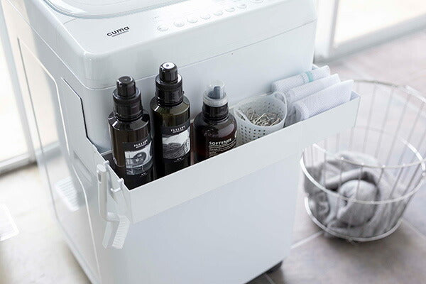 ●洗剤ボトルや洗濯ネットなどを洗濯機の手前に収納できるから洗濯作業がスムーズ!