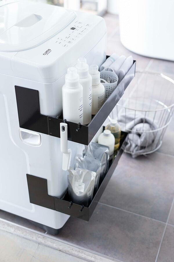 ●洗剤ボトルや洗濯ネットなどを洗濯機の手前に収納できるから洗濯作業がスムーズ!