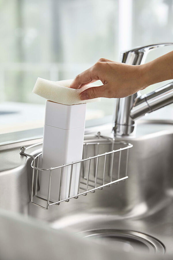●片手で押すだけでスポンジに直接洗剤が付く便利なディスペンサー。