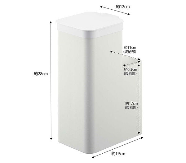 ●内寸サイズ: 開口部:約W10.5×D10.5cm(蓋使用時)、収納部:約W11×D6.3×H17cm ●品質表示: 本体:スチール(粉体塗装)、蓋:ABS樹脂