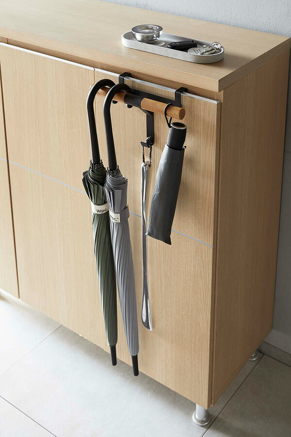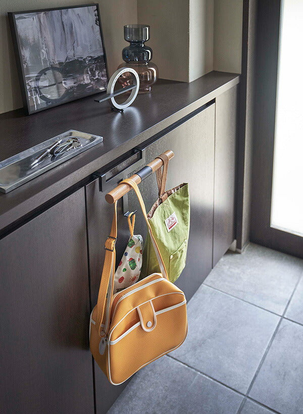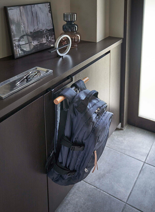 ●玄関の下駄箱収納扉に簡単取付け。天然木を使った便利なランドセル&リュックハンガー!