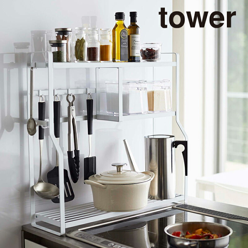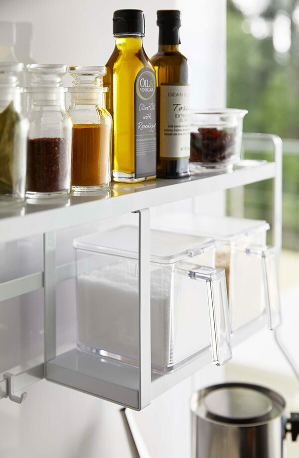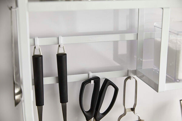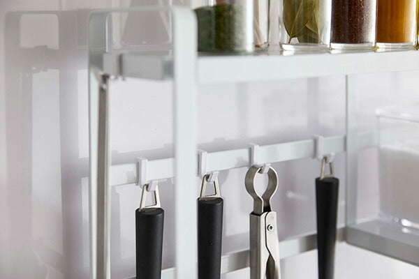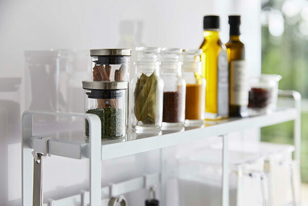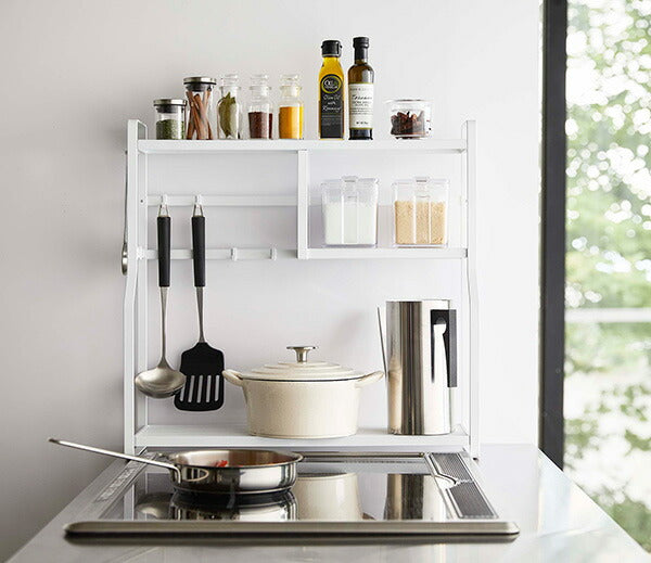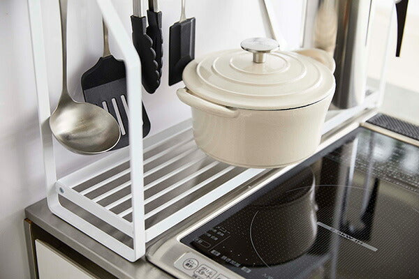 ●コンロ横にキッチンツールや調味料、鍋やオイルポットなどを一括収納。