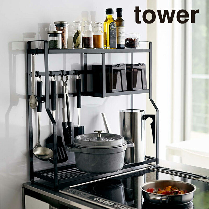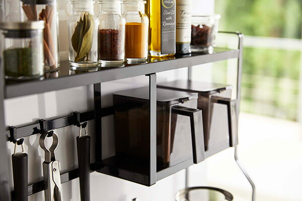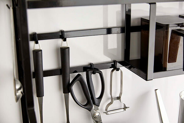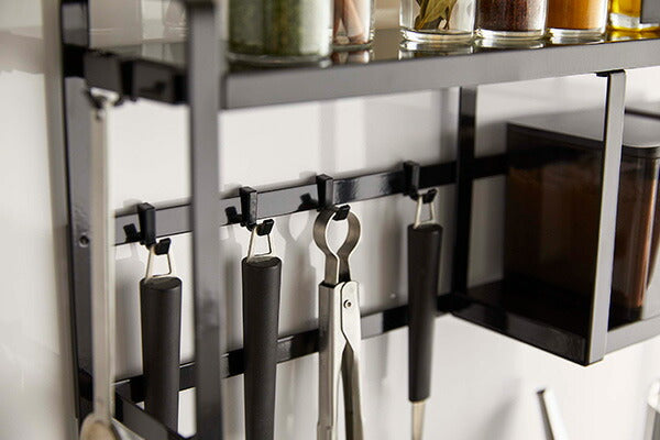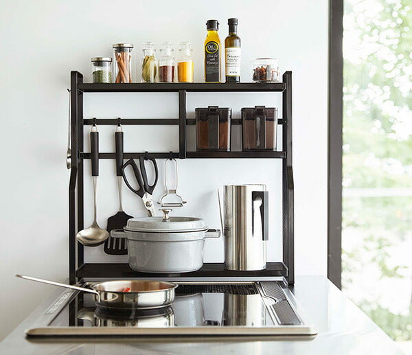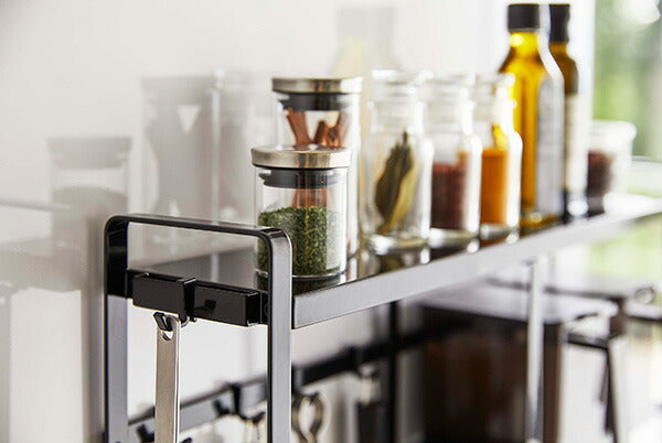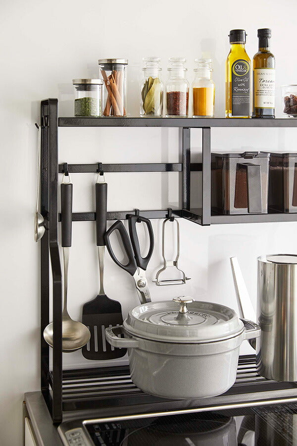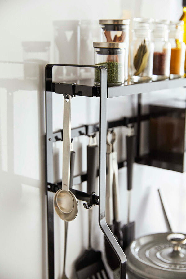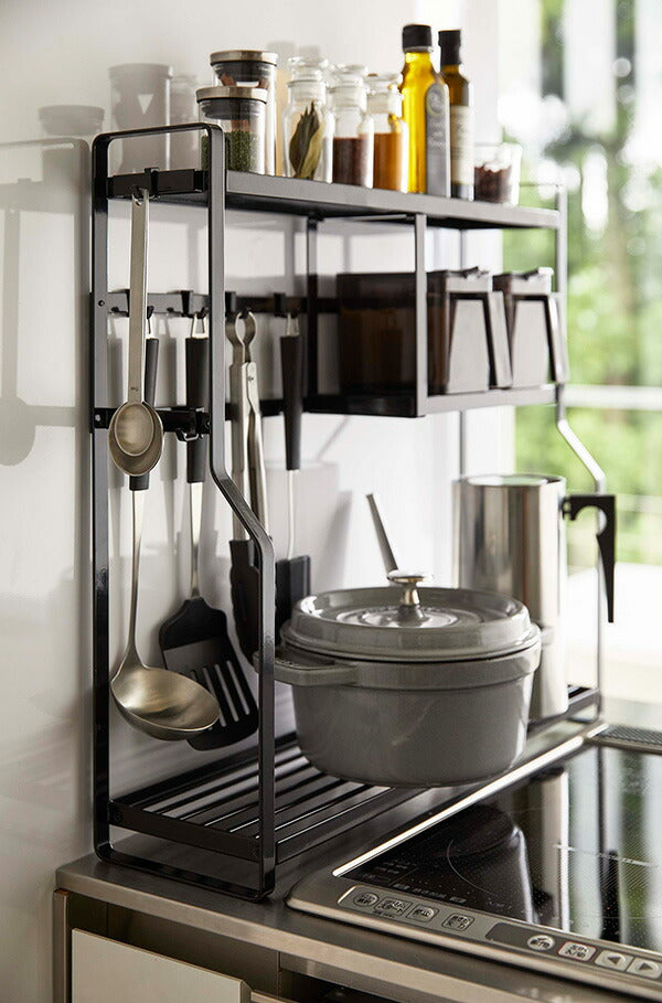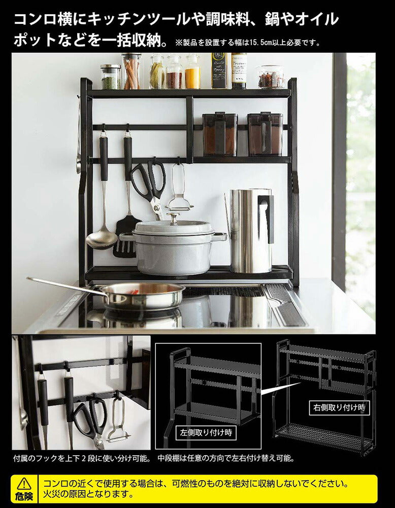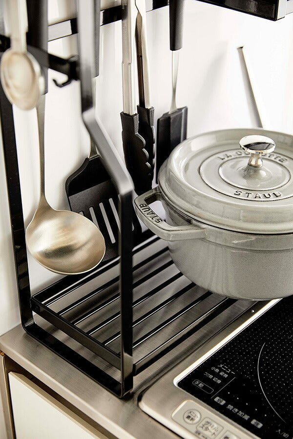 ●コンロ横にキッチンツールや調味料、鍋やオイルポットなどを一括収納。