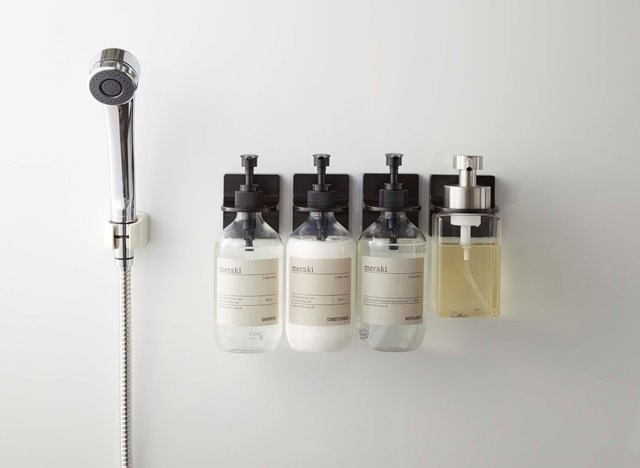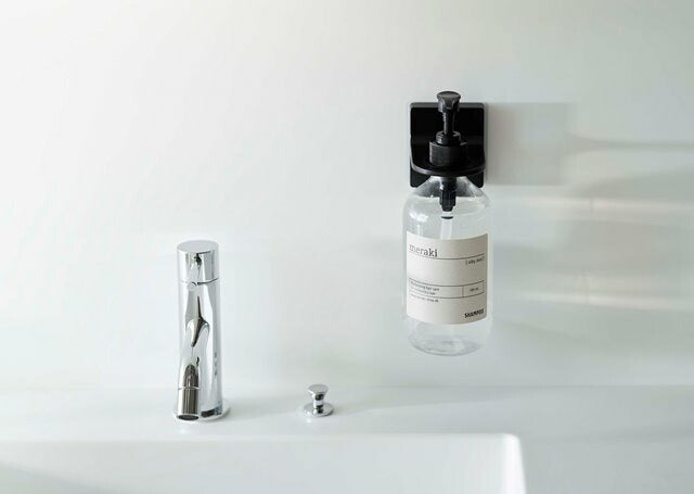●浴室のタイル面や洗面壁面などにフィルムフックで簡単取り付け。