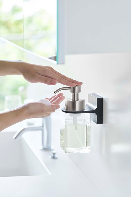 ●対応サイズ: ディスペンサーのねじ込み部分:約2.4cm~約3.2cm以内、容器のサイズ:直径約9cm以内、ホルダー穴:直径約3.2cm