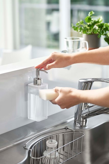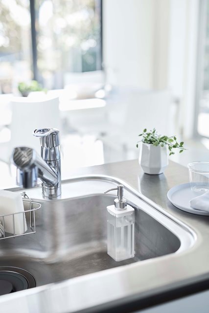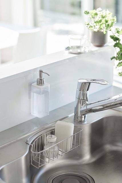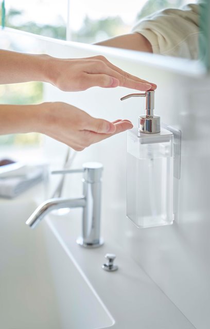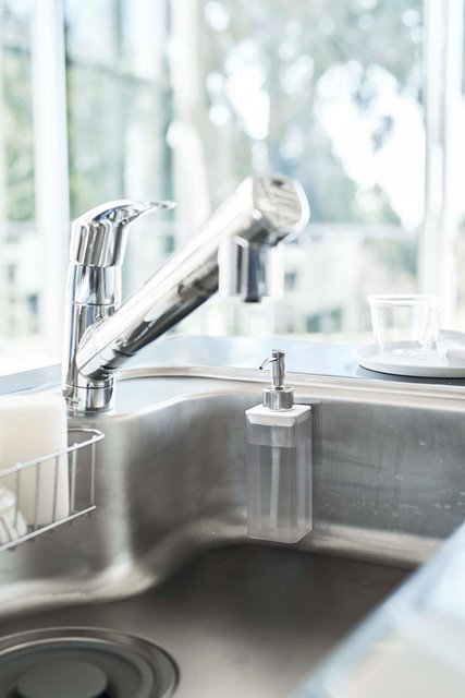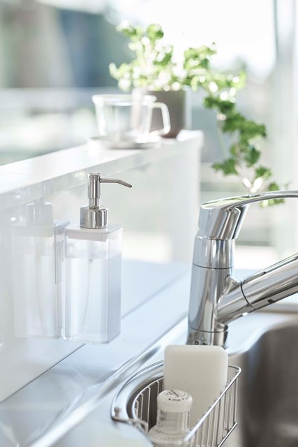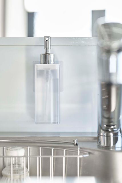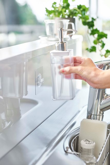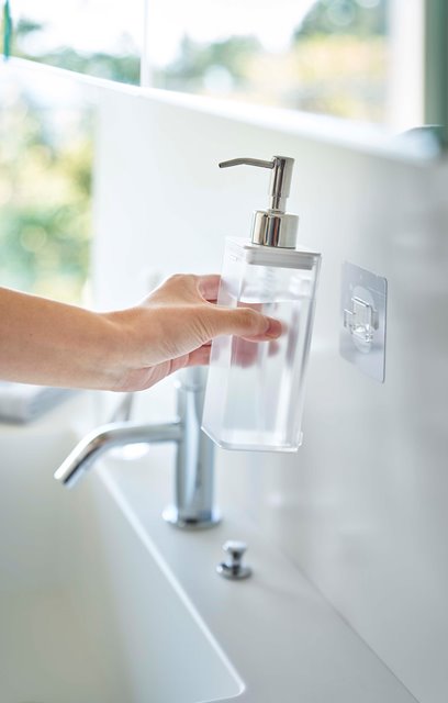●品質表示: ディスペンサー(容器:AS樹脂、蓋:ABS樹脂、パッキン:シリコーン ポンプ:ステンレス、パイプ:ポリエチレン) フィルムフック(フィルム表面・フック部分:ポリカーボネート フィルム中面:PET、フィルム接着面:シリコーン)フィルム中面:PET、フィルム接着面:シリコーン)