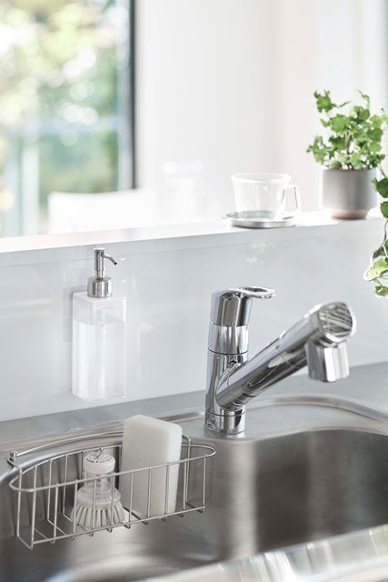 ●フィルムフックで壁面に浮かせて収納できるから衛生的。