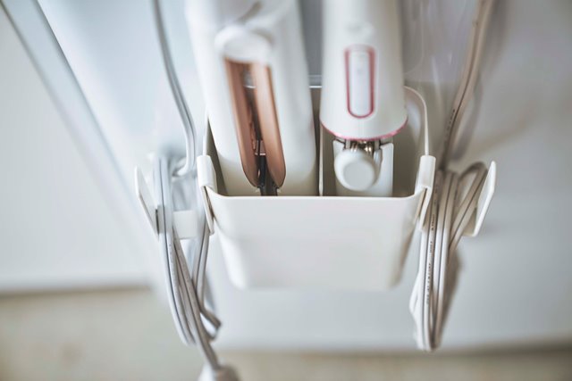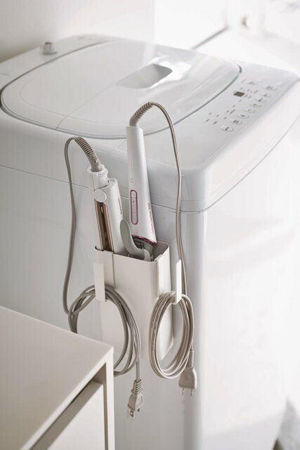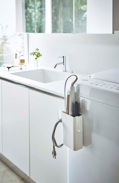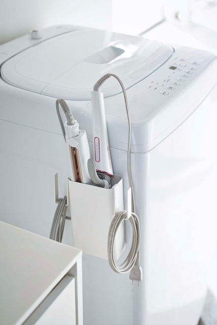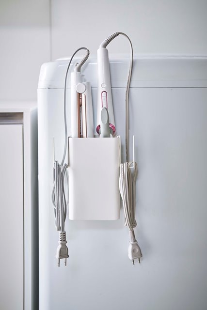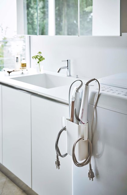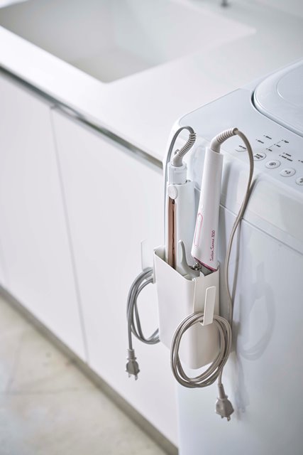 ●強力マグネットで置き場所に困る2本のヘアーアイロンやブラシを一括収納。