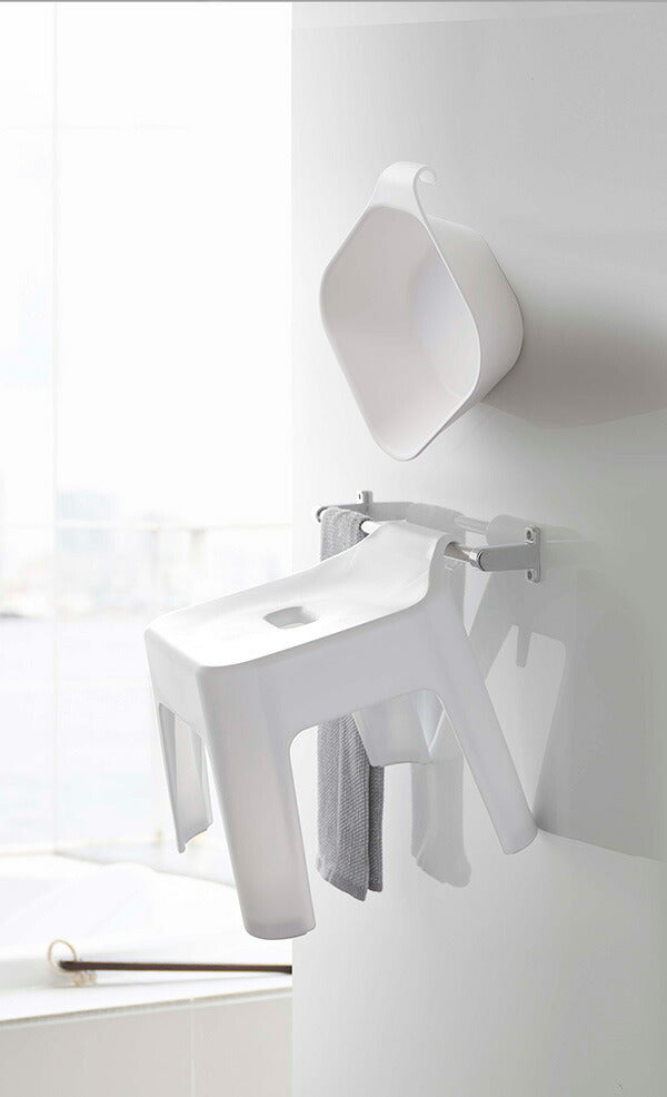 ●シャワーフックにも掛けられる突起付き。(座面:約H25cm)