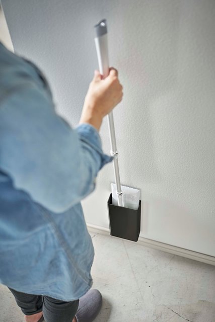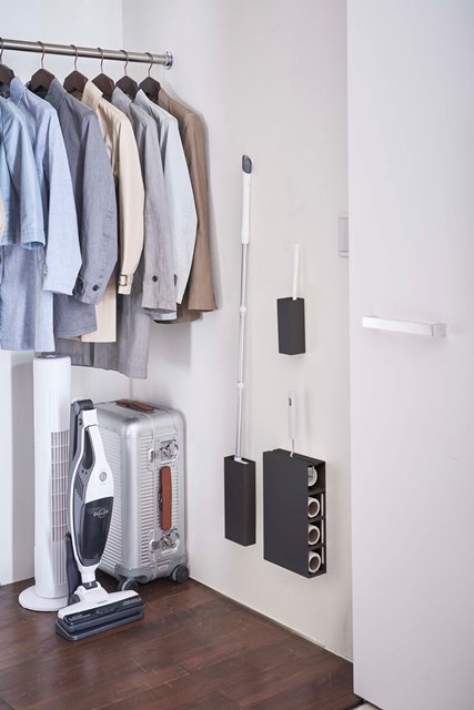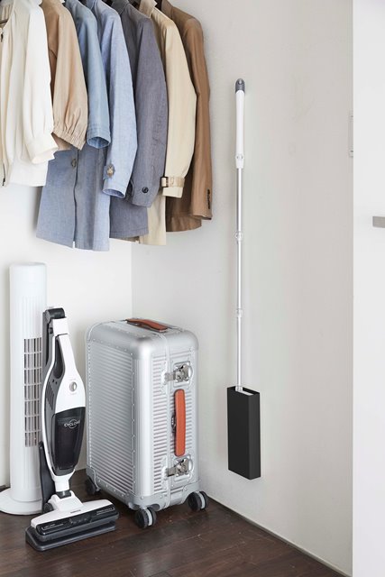 ●フローリングワイパーをスリムに立てて収納。