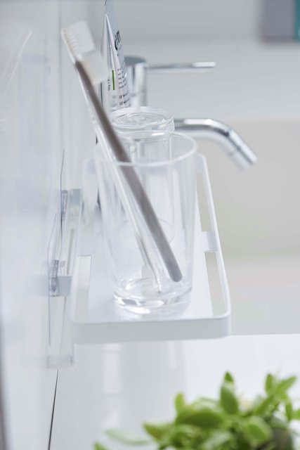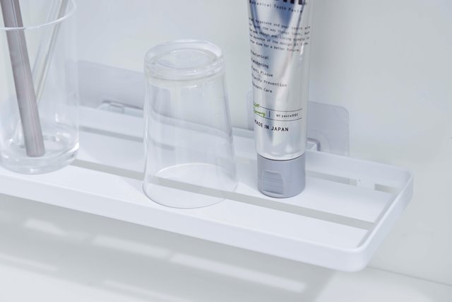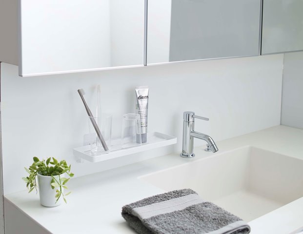 ●ワイドサイズだから歯ブラシや歯磨き粉、タンブラーなどを一括収納。