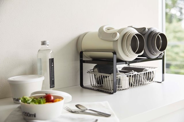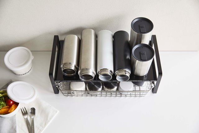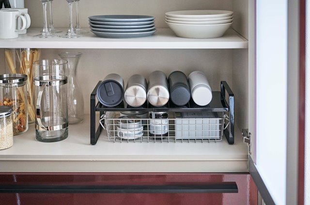 ●上棚にはマグボトル下にはキッチン小物などを収納すると便利。