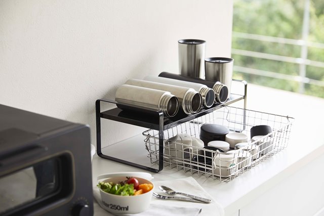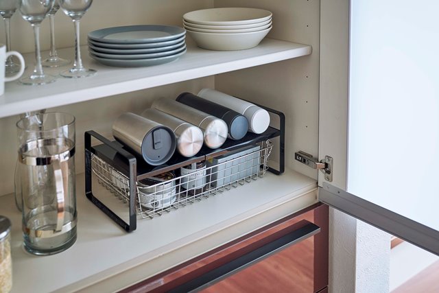 ●食器棚の中でマグボトルやお皿、キッチンカウンターの上で家電類や大きめのジャグボトルなどの収納にも便利です。