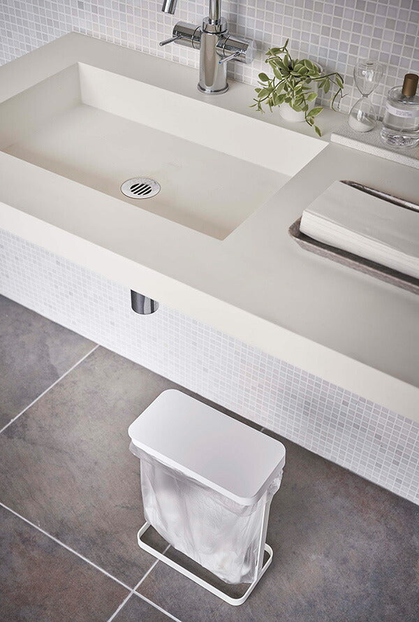 ●10L~20Lのポリ袋を本体にかぶせて蓋をするだけ!洗面台の下や横で使えるスリムで便利な簡易ゴミ箱。