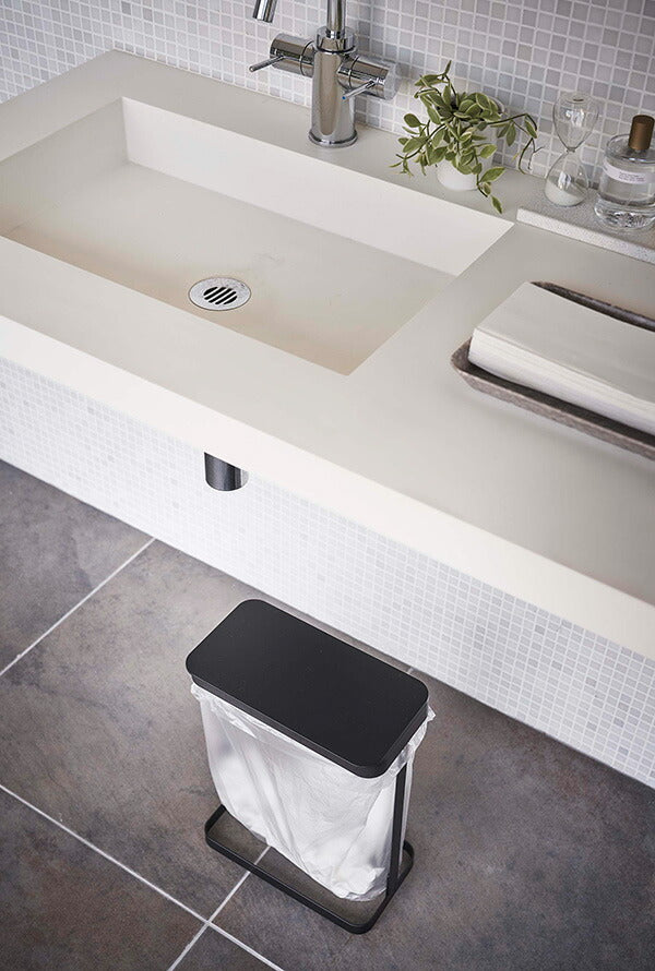 ●10L~20Lのポリ袋を本体にかぶせて蓋をするだけ!洗面台の下や横で使えるスリムで便利な簡易ゴミ箱。