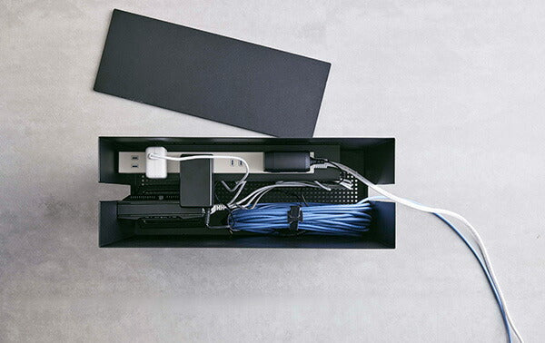●自宅やオフィスなどでのデスクワークに最適!かさばるLANケーブルや電源タップ・コード類からモデム、外付けハードディスクなど一括収納。